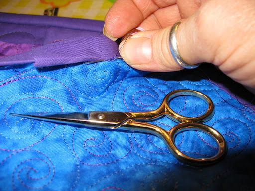 This is me putting the last stitches in the binding. More photos to follow tomorrow.