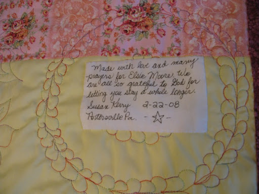 Anyway, Elsie teared up when I presented her with this quilt. This is the 4th quilt I have done on Maxine, my new APQS long arm. Not bad.